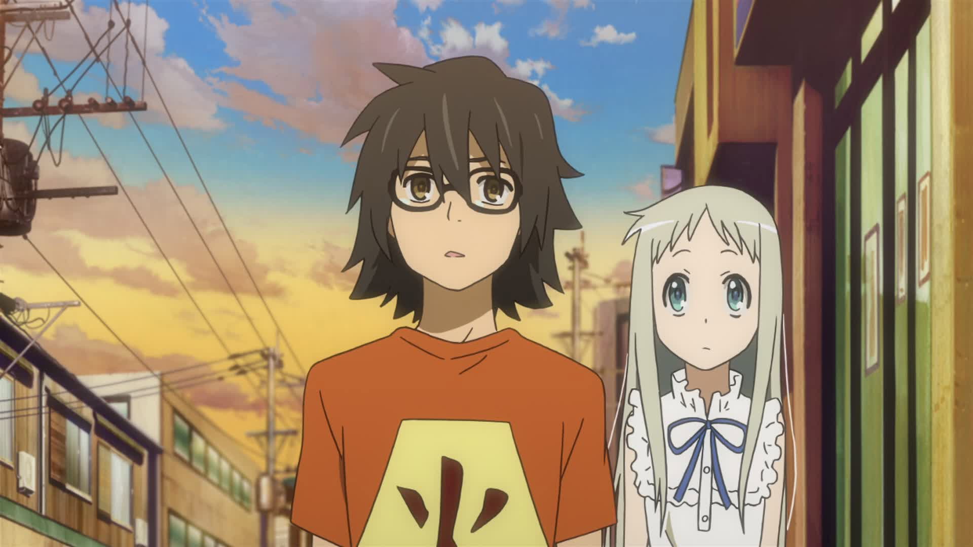Jintan decides to go to school again, thinking that might be Menma’s wish, and also to keep his promise to Anaru.