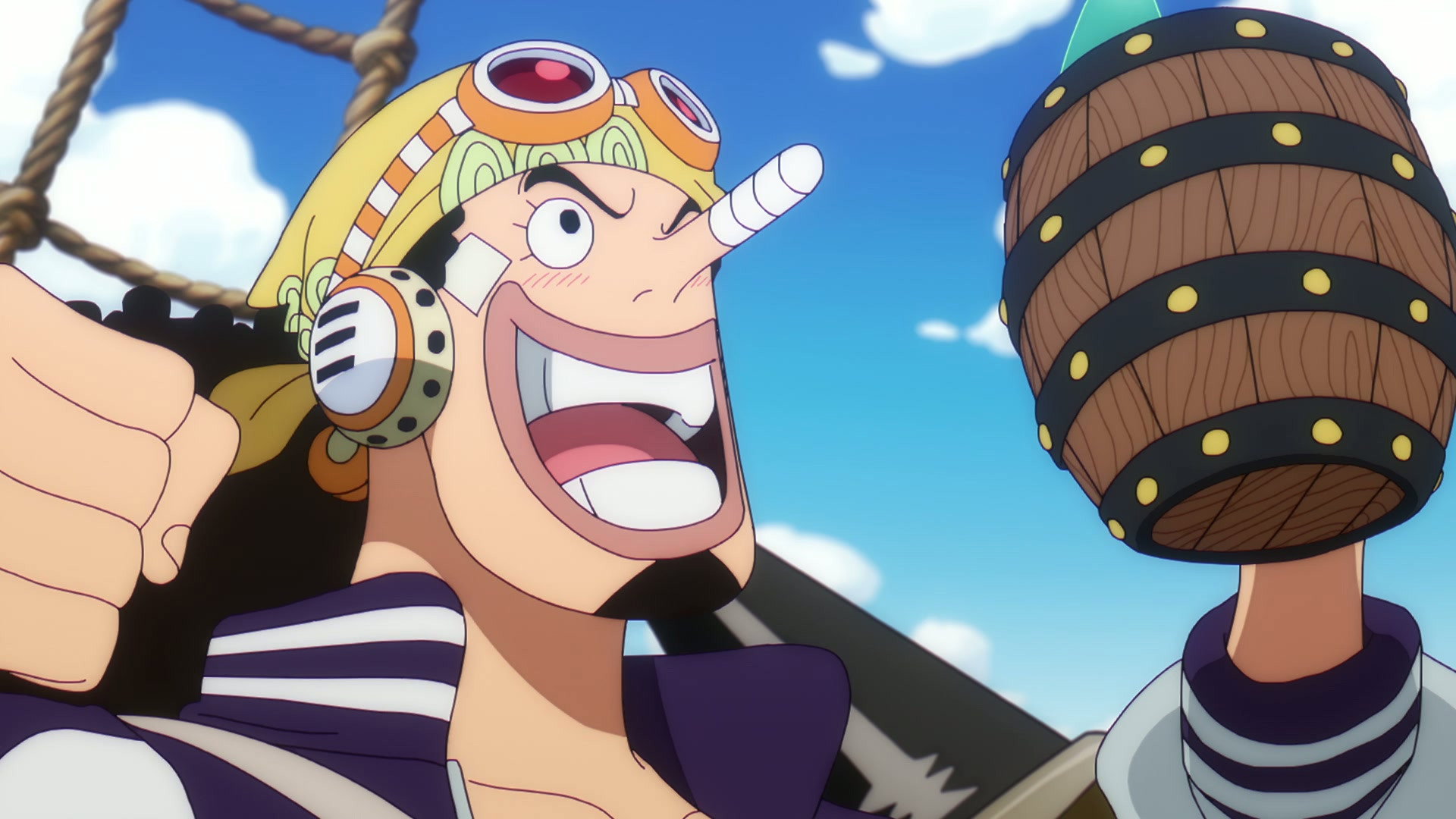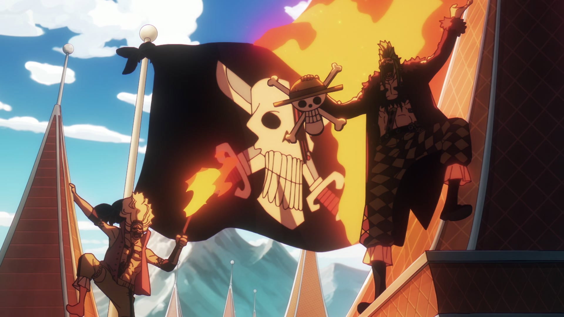 After leaving Egghead, the Straw Hats and the Giant Pirate Crew celebrate their reunion with a big banquet.