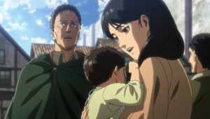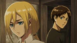 Eren and his companions in the 104th are assigned to the newly-formed Levi Squad, whose assignment is to keep Eren and Historia safe given Eren’s newly-discovered power and Historia’s knowledge and pedigree. Levi and Erwin have good reason to be concerned, because the priest of the Church that Hange had hidden away was found tortured to death, making it clear that the Military Police are involved with the cover-up. Things get more harrowing when the MPs make a move on Erwin and the Levi Squad narrowly avoids capture. Eren is also having problems with his Titan transformation, and a deadly killer has been hired to secure Eren and Historia, one Levi knows all too well from his youth. Then, hoping to retake Wall Maria and find the answers humanity seeks in Grisha’s basement, Eren, Mikasa, Armin and the rest of the Survey Corps return to the town where everything began: Shiganshina.