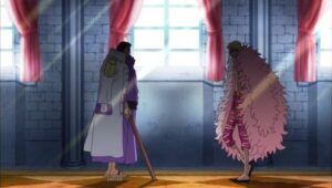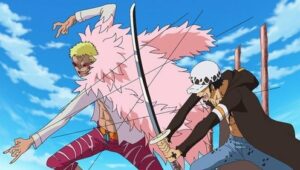The Straw Hat Pirates and Trafalgar Law, together with Kin’emon, Momonosuke and the captured Caesar Clown, travel to Dressrosa with the goal of taking down the nation’s king, Warlord of the Sea Donquixote Doflamingo. However, they soon set into motion a series of world-changing events, as their actions interact unexpectedly with those of larger forces at play.