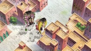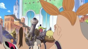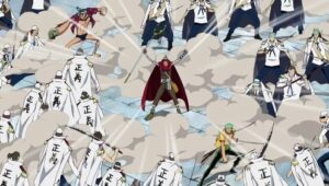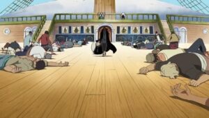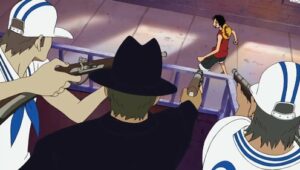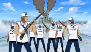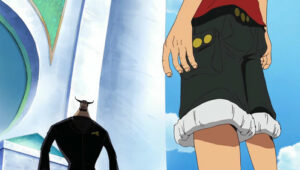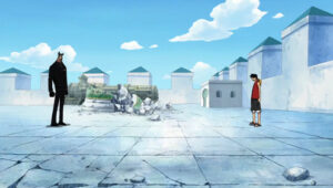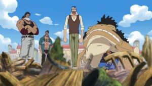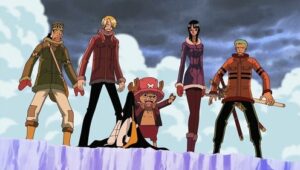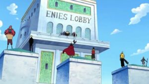 The Straw Hats, Sogeking, the Franky Family, and the shipwrights of the Galley-La Company arrive at Enies Lobby aboard the Rocketman to rescue Nico Robin and Franky. Standing in their way, however, are the forces of the World Government, including its deadly assassination unit, CP9. A massive battle ensues between the two sides when Luffy declares war against the World Government.
