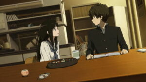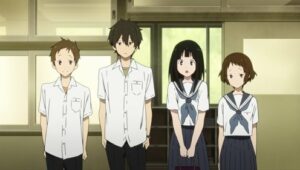 Oreki Houtarou is a minimalistic high school boy. One day, he joins the Classic Literature Club at his elder sister’s request. There he meets Chitanda Eru, Fukube Satoshi, and Ibara Mayaka. Chitanda is a calm beautiful girl but she turns into an embodiment of curiosity once she says, “I’m curious.” Fukube is a smiling boy with a fantastic memory who calls himself a database. Ibara is a short girl and is strict with others and herself. They begin to investigate a case that occurred 45 years ago. Hints of the mystery are buried in an old collection of works of the former members of Classics Club. The collection is titled “Hyouka.”